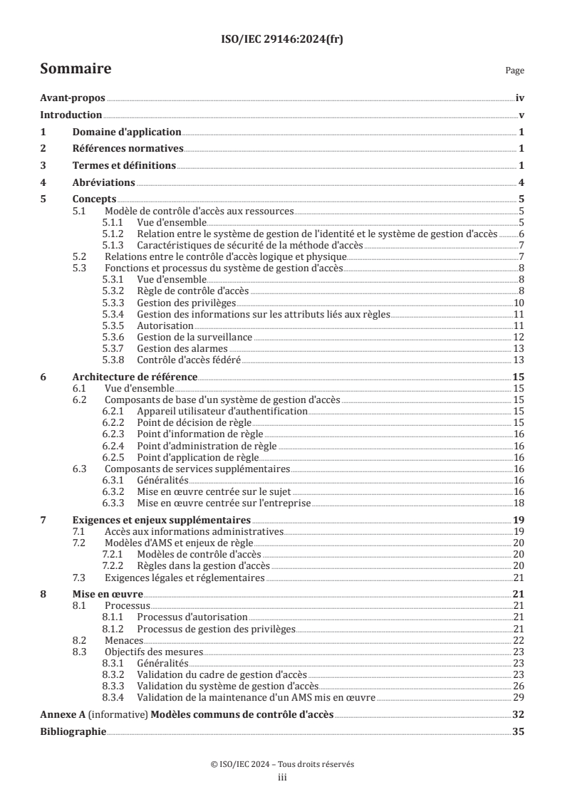 Keywords: ISO/IEC 29146:2024, access management, access control, access token, PDP, PEP, PIP, IAM, authorization, privilege management, federated access.