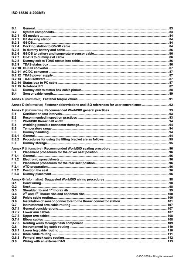 ISO 15830-4:2005 specifies requirements for assembling and disassembling of the WorldSID 50th percentile side impact dummy, a standard anthropomorphic dummy for side impact testing of road vehicles. It is applicable to impact tests involving: passenger vehicles of categories M1 and goods vehicles of categories N1, impacts to the side of the vehicle structure, and impact tests involving the use of an anthropometric dummy as a human surrogate for the purpose of evaluating compliance with vehicle safety standards.