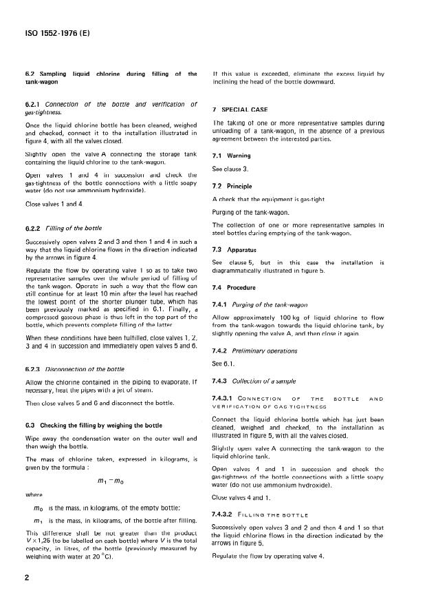 Keywords: ISO 1552:1976, liquid chlorine sampling, volumetric chlorine content, tank-wagon sampling, steel sample bottles, gas-tight sampling, industrial chlorine.