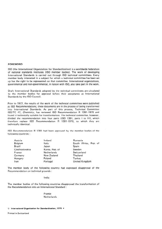 ISO/TC 47, Chemistry, has reviewed ISO Recommendation R 1391-1970 and