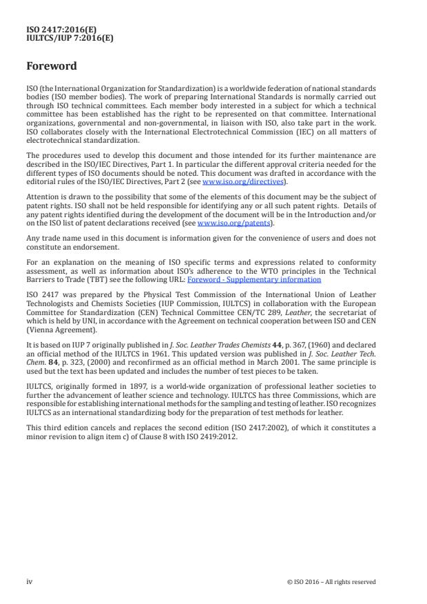 ISO 2417 was prepared by the Physical Test Commission of the International Union of Leather
