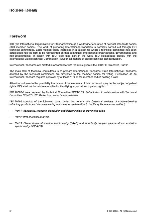 Keywords: ISO 20565-1:2008, chrome-bearing refractory, chemical analysis, gravimetric silica, ICP-AES, FAAS, wet chemical methods, sample dissolution, XRF alternative.