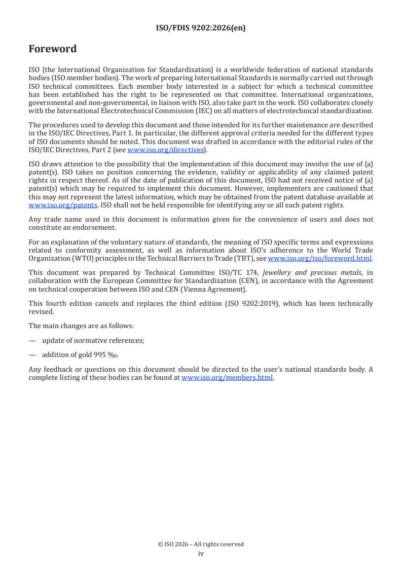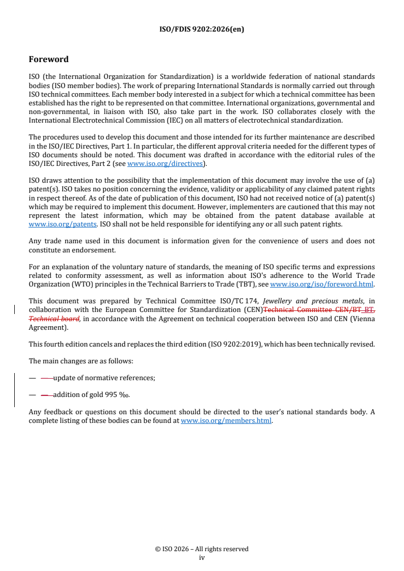 REDLINE ISO/FDIS 9202 - Jewellery and precious metals — Fineness of precious metal alloys Released:6. 02. 2026