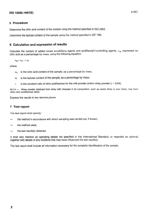 ISO 12082:1997 - Processed cheese and processed cheese products -- Calculation of the content of added citrate emulsifying agents and acidifiers/pH-controlling agents, expressed as citric acid