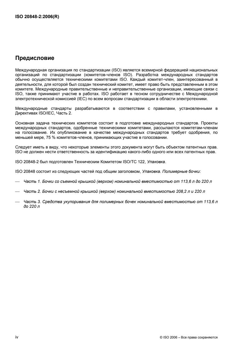 ISO 20848 состоит из следующих частей под общим заголовком, Упаковка. Полимерные бочки: