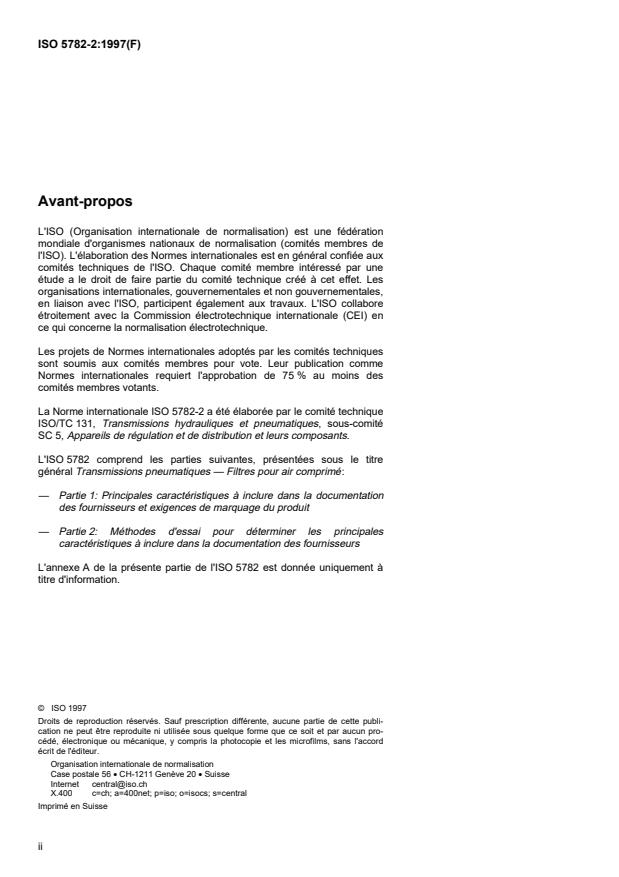 © ISOISO 5782-2:1997(E)1Pneumatic fluid power — Compressed air filters —Part 2:Test methods to determine the main characteristics to be includedin supplier's literature1