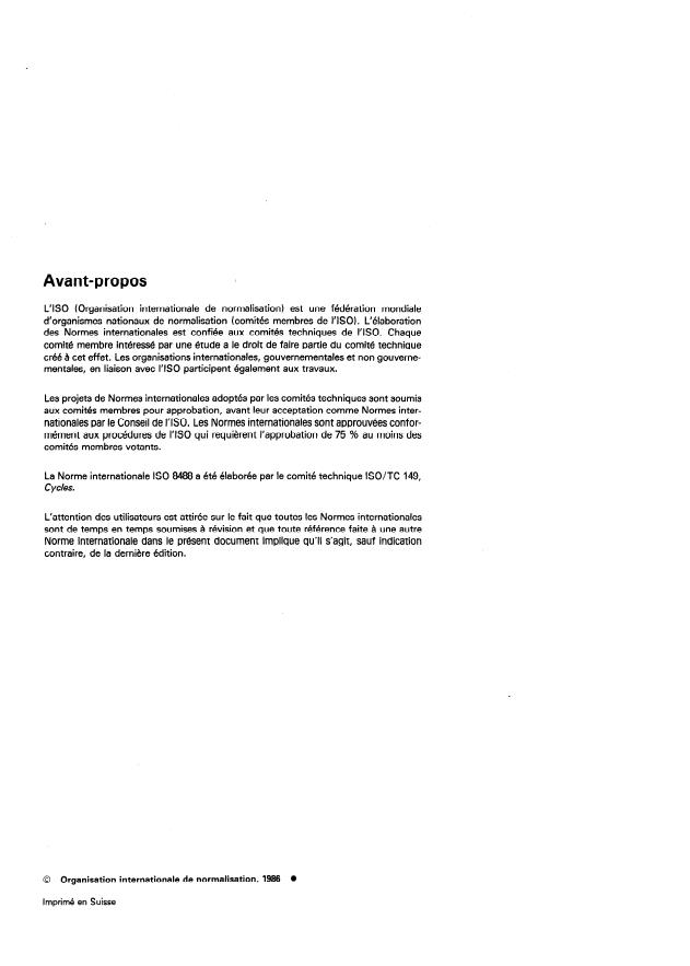 ISO 8488:1986 is classified under the following ICS (International Classification for Standards) categories: 43.150 - Cycles. The ICS classification helps identify the subject area and facilitates finding related standards.