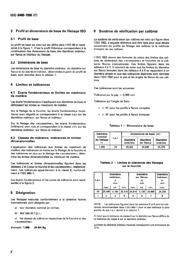 3 Profil et dimensions de base du filetage ISO 6 Système de vérification par calibres