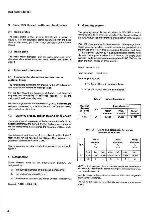 - Gauging system: Gauging and gauge limit calculations per ISO 1502; the standard provides GO/NOT GO ring, plug, calliper and plain gauges limits for fork and fittings.