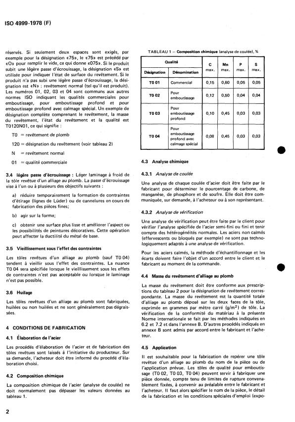 Descripteurs : produit sidérurgique, produit laminé a froid, tôle métallique, tale fine, acier non allié, revêtement en plomb, spécification de