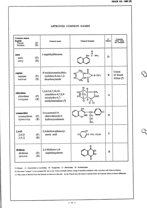 Committee ISO/TC 81, Common Names for Pesticides, for certain pesticides of international