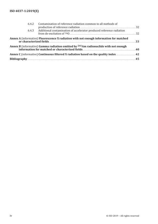- Annex A–C include additional X‑ray and radionuclide radiations (e.g., fluorescence X radiation, 241Am) and quality‑index based fields; these are informative and not designated primary reference fields.
