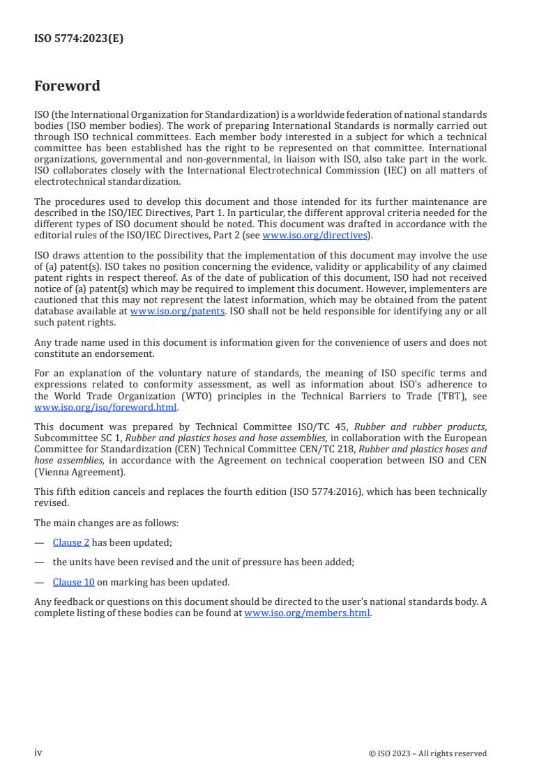 Keywords: ISO 5774:2023, plastics hoses, textile-reinforced hose, compressed-air hose, thermoplastic hose, hose specification, hydrostatic test, hydrolysis test, tensile strength, hose assembly.