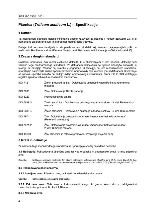3.1 Nečistoče: Poškodovana pšenična zrna ter vse organske in anorganske snovi, ki niso pšenična