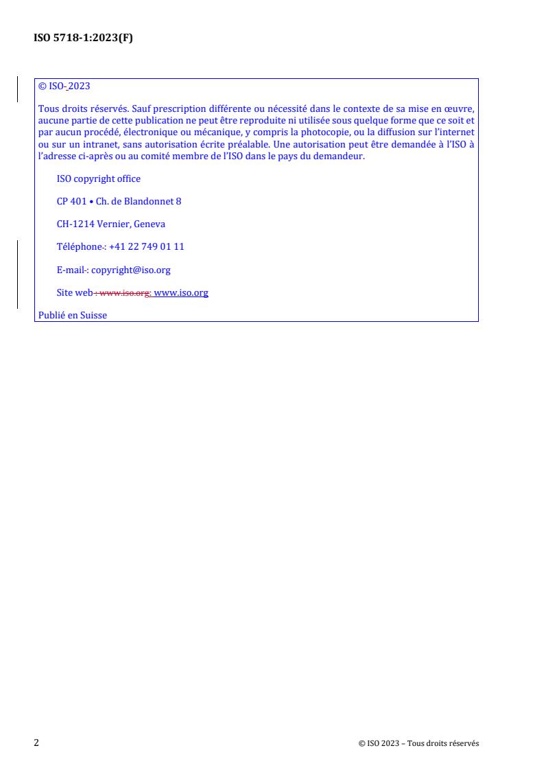 La présente première édition de l'ISO 5718--1, avec l'ISO 5718--2, annule et remplace les ISO 5718:2013