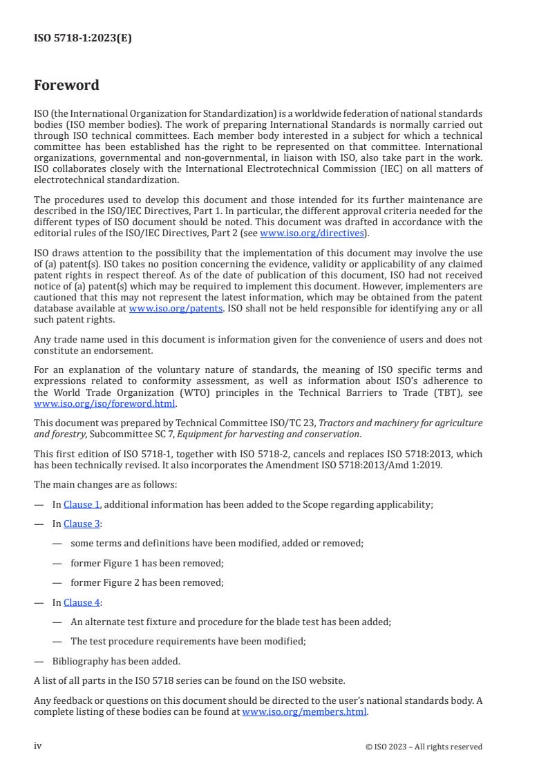 REDLINE ISO 5718-1:2023 - Matériel de récolte — Exigences relatives aux éléments coupants — Partie 1: Lames utilisées sur les faucheuses à disques rotatifs et les faucheuses à tambours rotatifs Released:19. 04. 2023