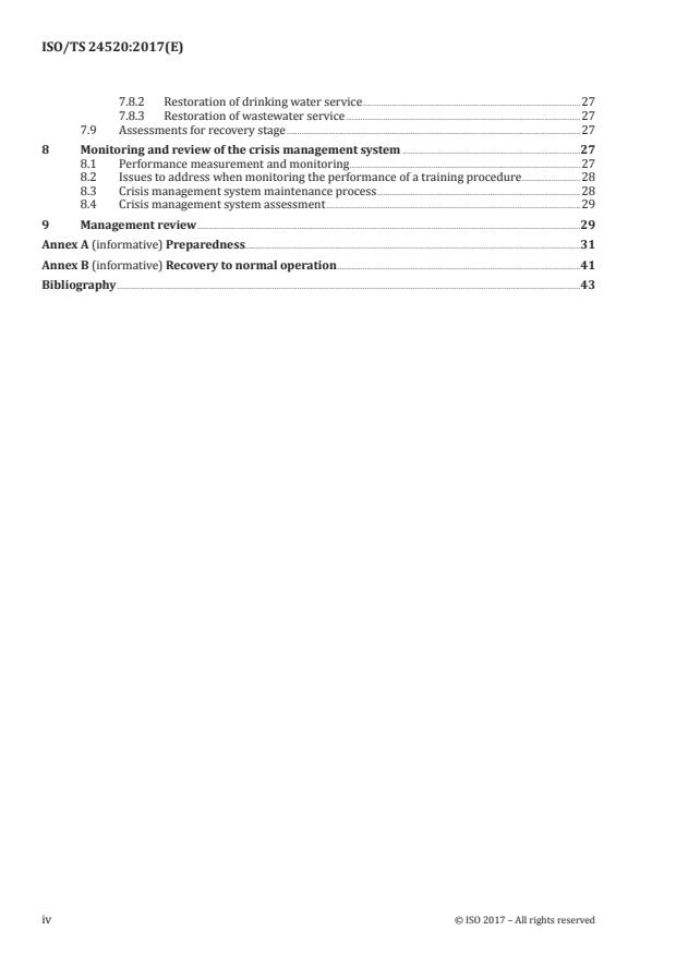 Keywords: ISO/TS 24520:2017, crisis management, water utilities, drinking water supply, wastewater systems, emergency preparedness, response, recovery, risk assessment, sampling and analysis, alternative water supply.