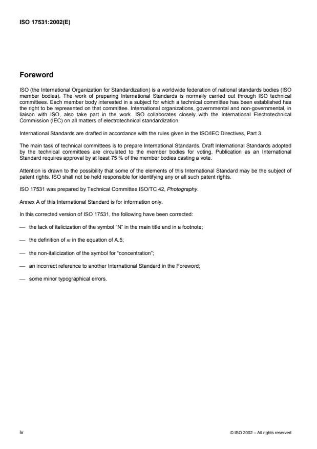 ISO 17531 was prepared by Technical Committee ISO/TC 42, Photography.
