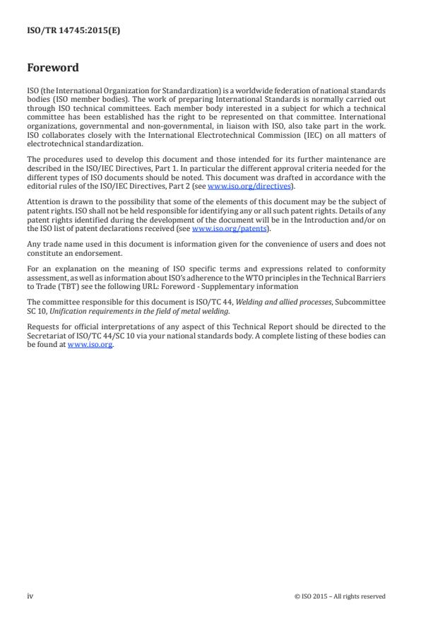 ISO/TR 14745:2015 is a technical report published by the International Organization for Standardization (ISO). Its full title is "Welding — Post-weld heat treatment parameters for steels". This standard covers: ISO/TR 14745:2015 provides recommendations for post-weld heat treatment (PWHT) of steels with recommendations for holding temperatures and holding times for different materials and material thicknesses. These recommendations are limited to stress relieving for non-alloy steels (groups 1, 2, 3, 4, and 11) and to tempering for Cr-Mo-(Ni) steels (groups 5 and 6) and martensitic stainless steels (group 7.2), and are independent of type of product or location. The recommendations do not supersede any guidance given in material supplier specifications, e. g. thermo-mechanically treated fine-grain steels. It does not specify when PWHT is required. Such requirements are given in product standards, material specifications, or material data sheets.