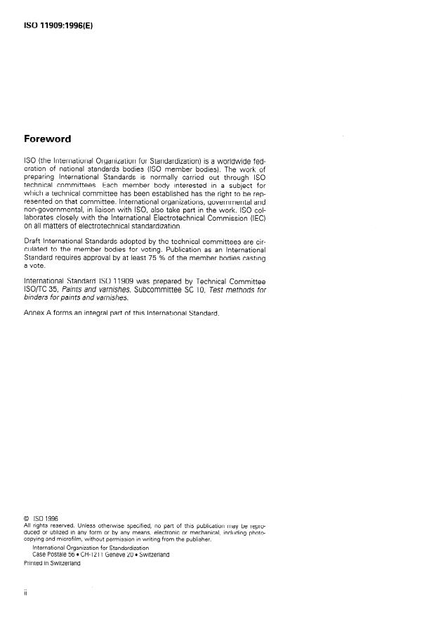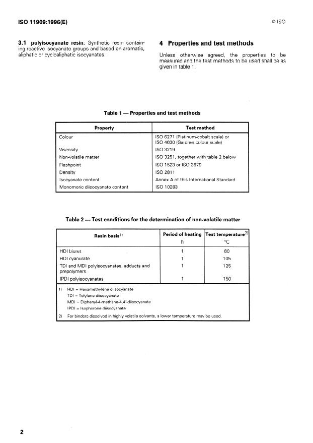 ISO 11909:1996 - Binders for paints and varnishes -- Polyisocyanate resins -- General methods of test
