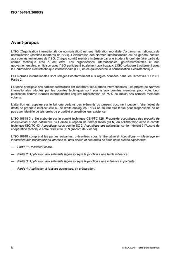 L'ISO 10848-3 a été élaborée par le comité technique CEN/TC 126, Propriétés acoustiques des produits de