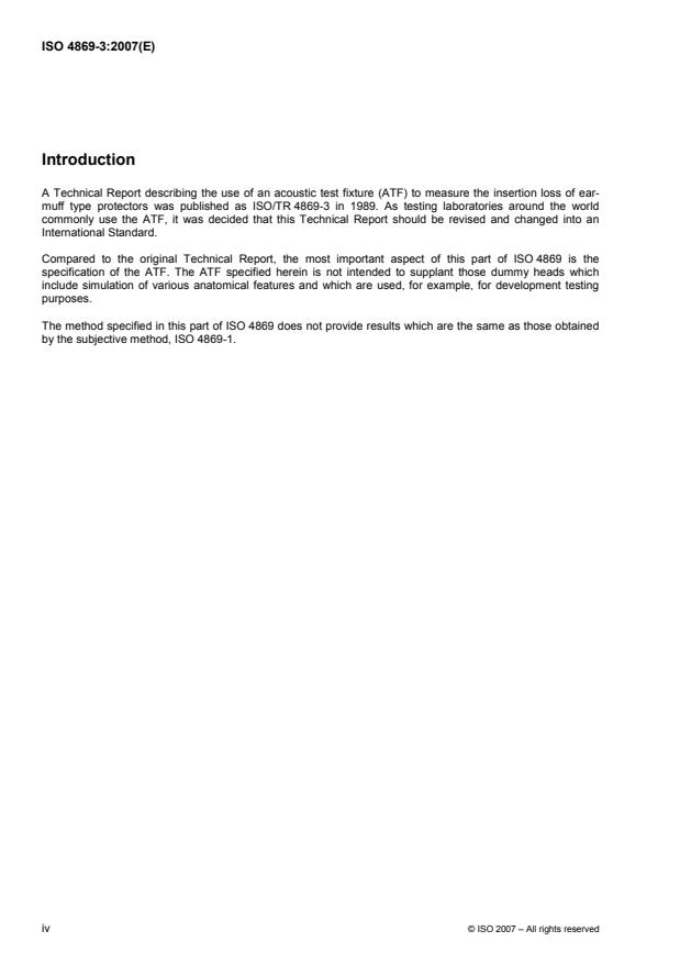 Keywords: ISO 4869-3, acoustic test fixture, insertion loss, ear‑muff, hearing protectors, measurement method, acoustics standard, test laboratory, one‑third‑octave.