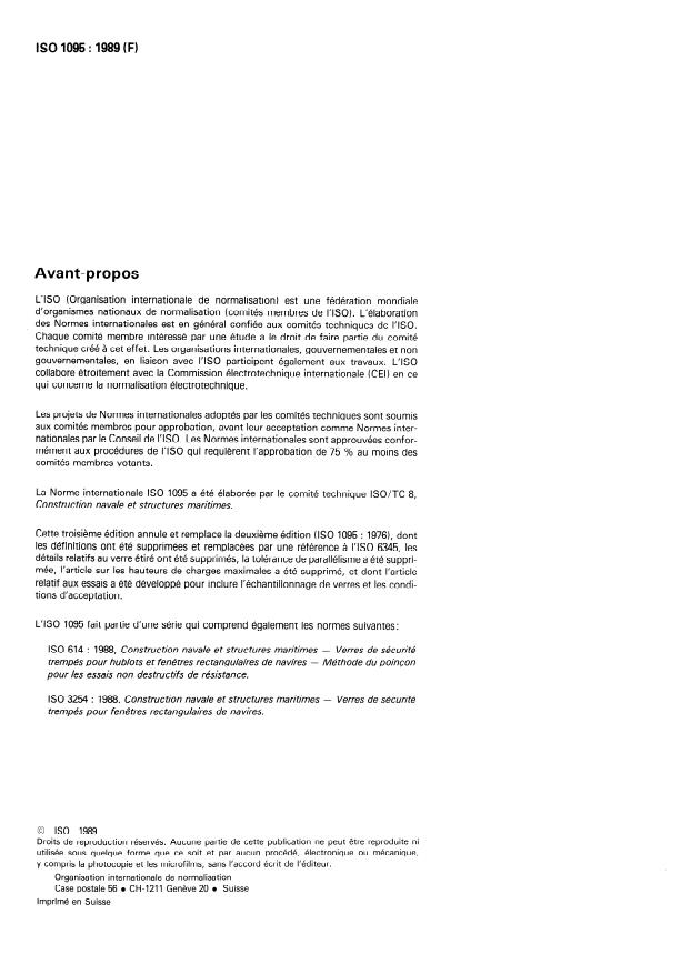 ISO 1095:1989 - Construction navale et structures maritimes -- Verres de sécurité trempés pour hublots de navires