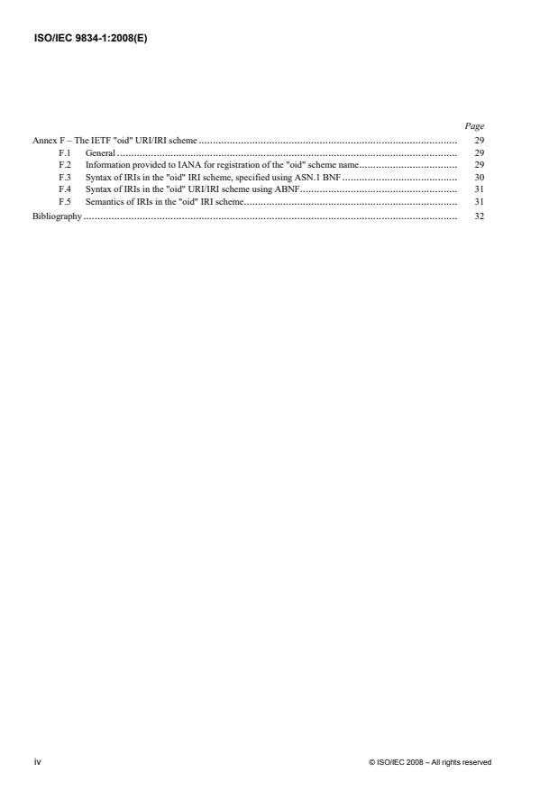 ISO/IEC 9834-1:2008: specifies a registration-hierarchical-name-tree (RH-name-tree) which is a generic tree structure for allocations made by a hierarchical structure of Registration Authorities, and the specific form of this that supports the ASN.1 OBJECT IDENTIFIER type and the ASN.1 OID-IRI type (ISO/IEC 8824-1); registers top-level arcs of the international object identifier tree; specifies procedures which are generally applicable to registration in the context of any RH-name-tree; provides guidelines for the establishment and operation of International Registration Authorities for use, when needed, by other ITU-T Recommendations and/or International Standards; provides guidelines for additional International Standards which choose to reference the procedures in ISO/IEC 9834-1:2008; provides a recommended fee structure for lower-level Registration Authorities; records the information provided to IETF and the registration with IANA of the "oid" IRI scheme. It does not exclude or disallow the use of any syntactic form of names or naming domains for registration purposes. It is intended to cover those cases where a registration-hierarchical-name is an appropriate form of identification. Information about registration for specific objects is contained in separate International Standards. ISO/IEC 9834-1:2008 applies to registration by ITU-T Recommendations and/or International Standards, by International Registration Authorities and by any other Registration Authority.