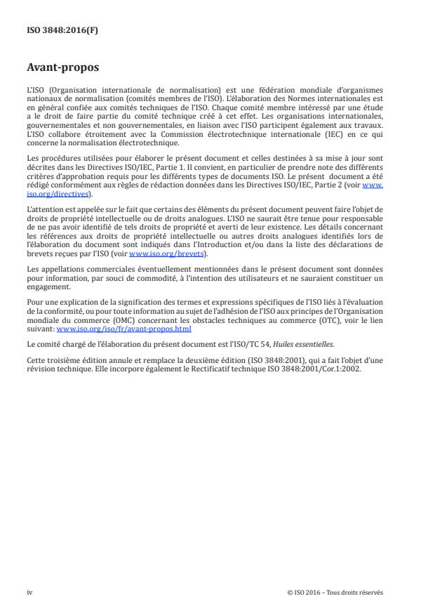 Le comité chargé de l’élaboration du présent document est l’ISO/TC 54, Huiles essentielles.