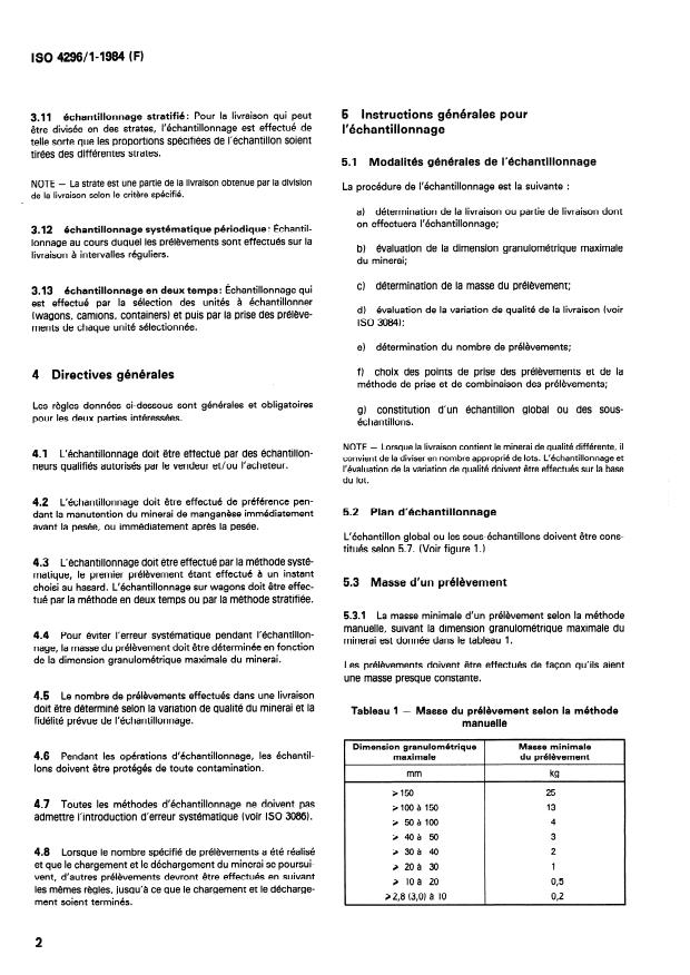 Keywords: ISO 4296-1:1984, manganese ores sampling, increment sampling, mechanical sampling, manual sampling, sampling precision, hammer and shovel method.