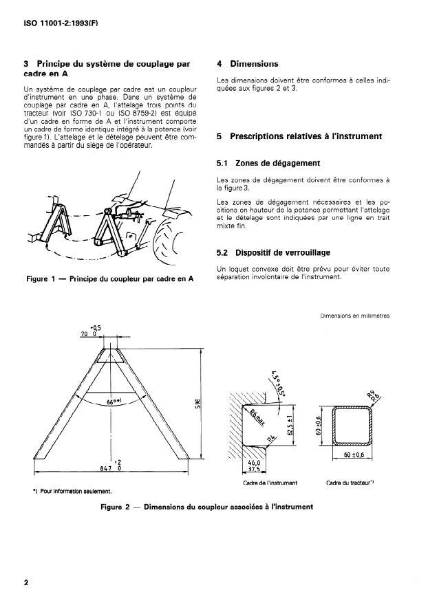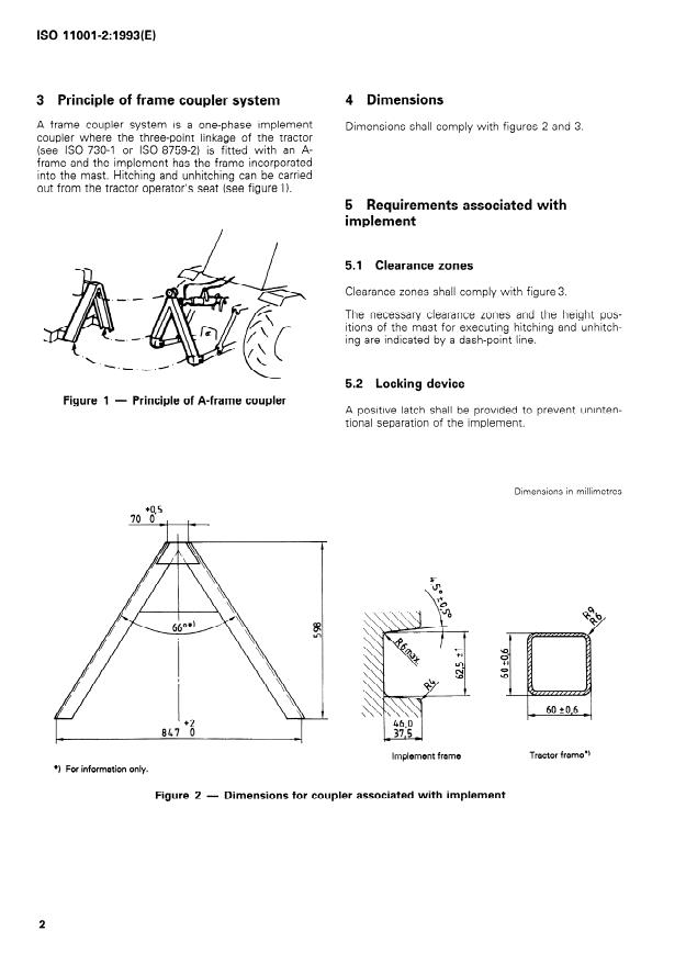 Keywords: ISO 11001-2:1993, A-frame coupler, three-point hitch, agricultural wheeled tractors, quick hitch couplers, ISO 730-1, implement mounting, category 2 tractors.