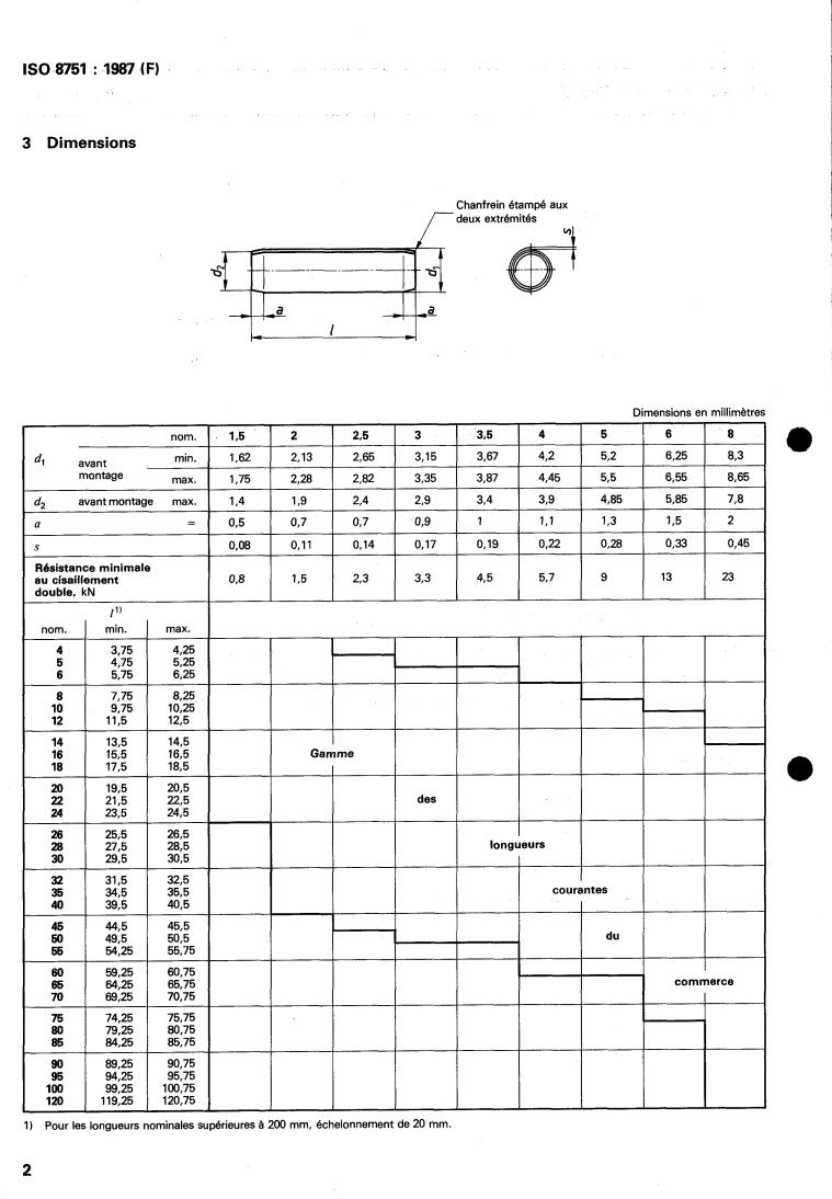 et de diamètre nominal, dl, de 1,5 à 8 mm inclus.