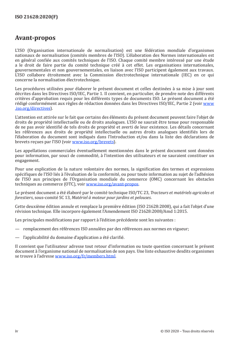 ISO 21628:2020 - Matériel de jardinage — Systèmes motorisés de collecte des matériaux — Sécurité/4/2020