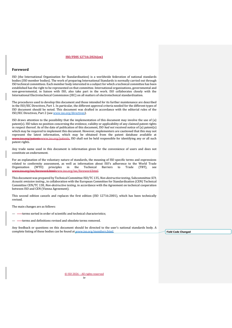 REDLINE ISO/FDIS 12716 - Non-destructive testing — Acoustic emission testing — Vocabulary Released:29. 01. 2026