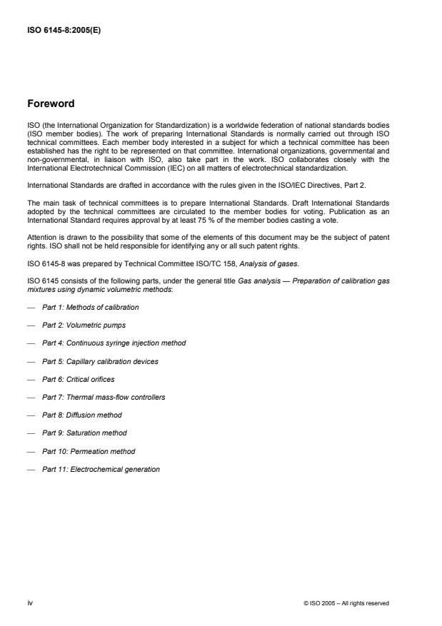 ISO 6145-8:2005 - Gas analysis -- Preparation of calibration gas mixtures using dynamic volumetric methods