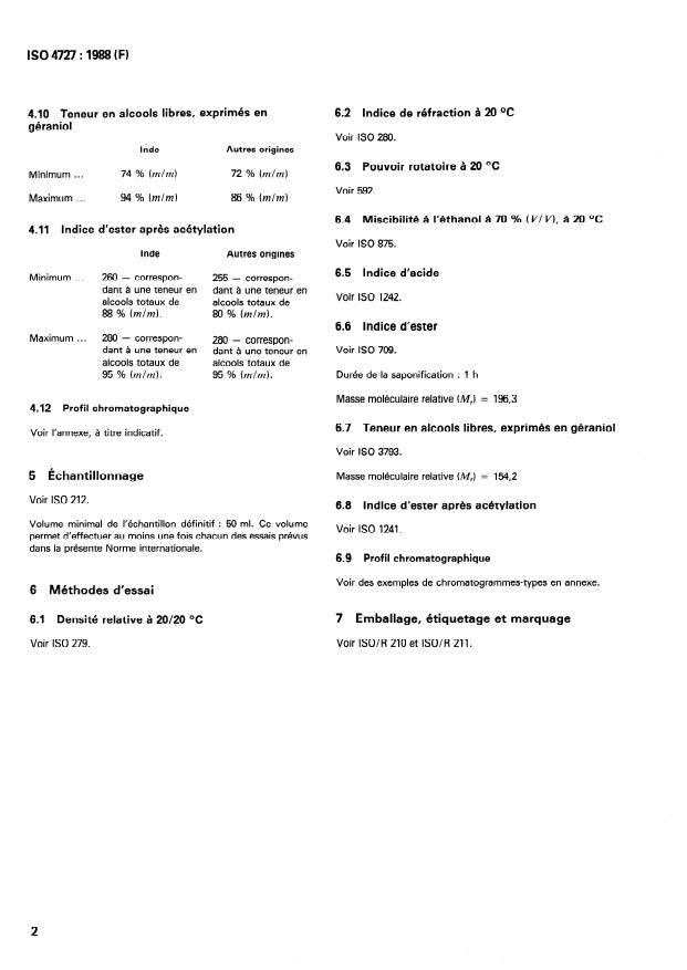 ISO 4727:1988 - Oil of palmarosa (Cymbopogon martinii (Roxburgh) W. Watson var. motia)