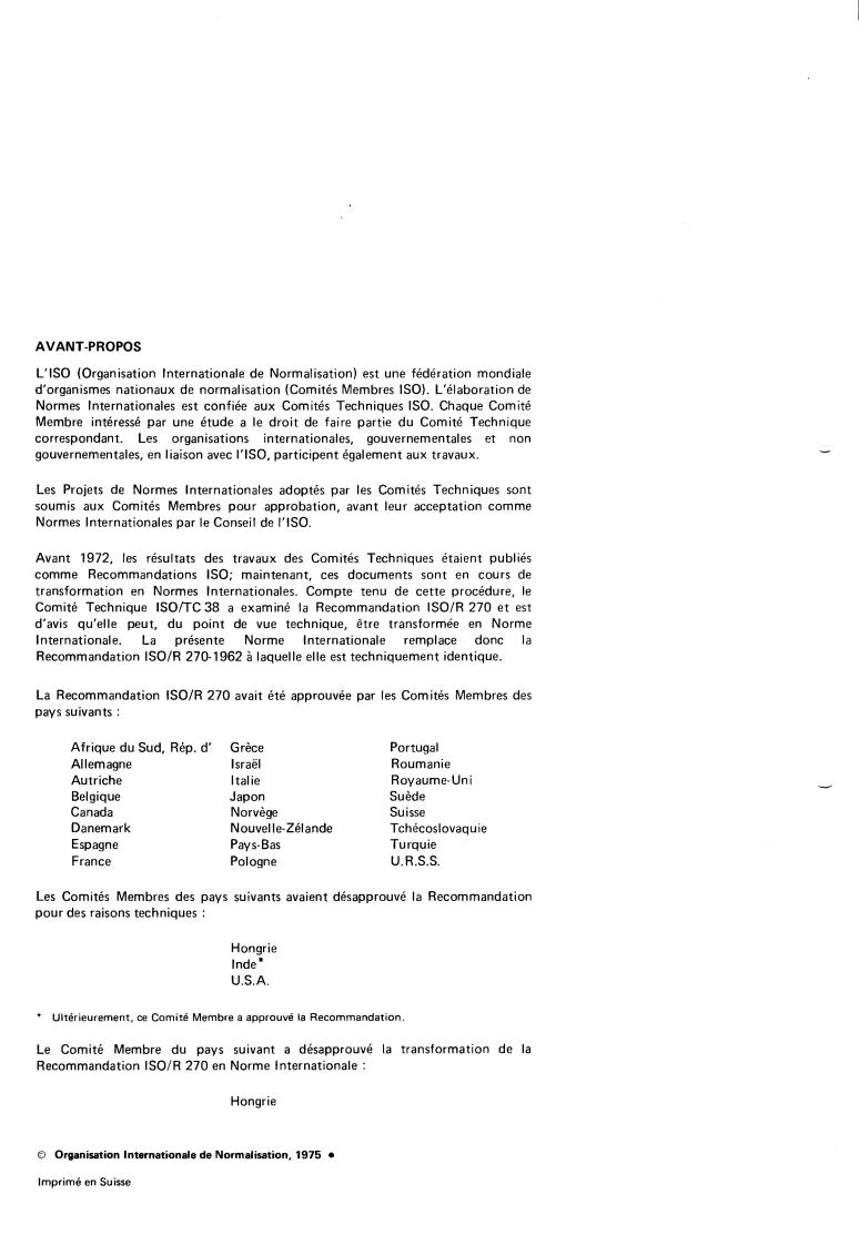 replaces IS0 Recommendation R 270-1962 to which it is technically identical.