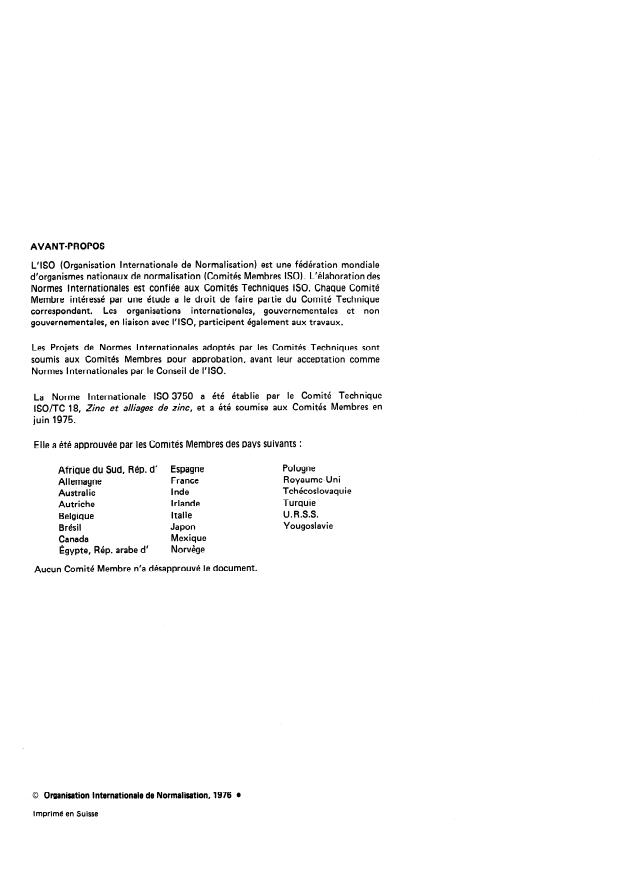ISO/TC 18, Zinc et a/iages de zinc, et a été soumise aux Comités Membres en