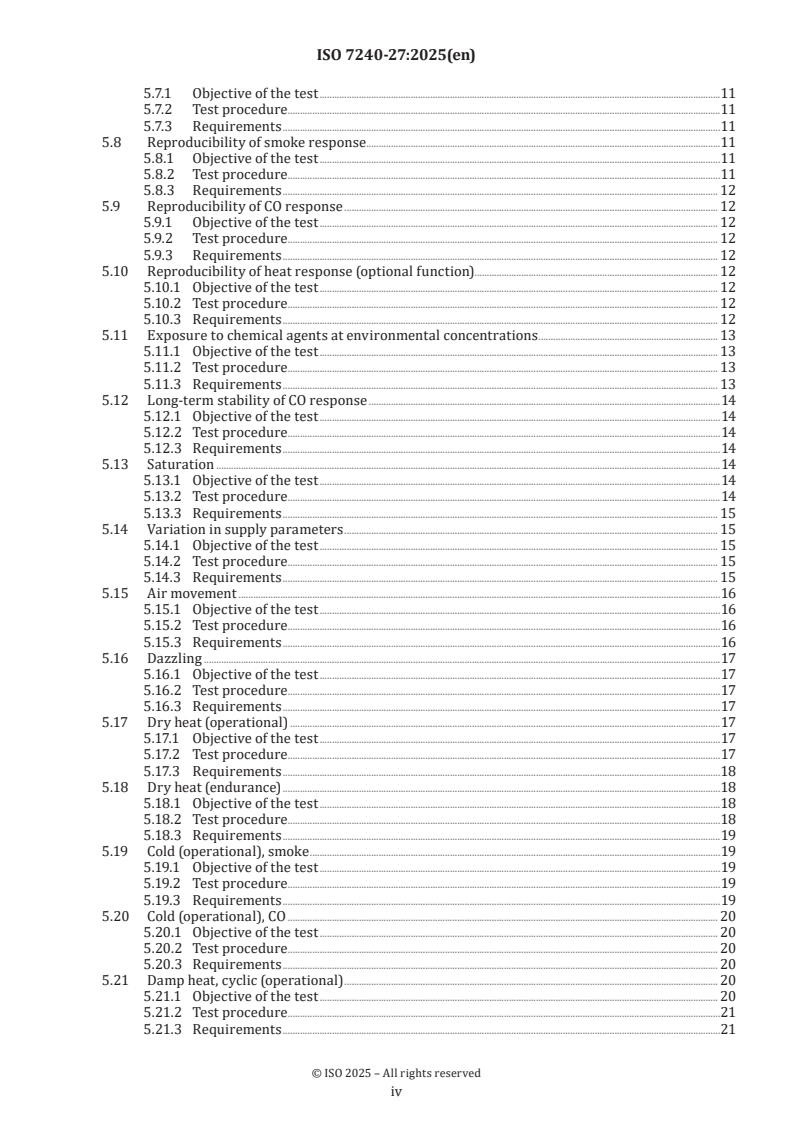 for CO fire detectors and for CO and heat detectors can be found in ISO 7240-6 and ISO 7240-8 respectively.