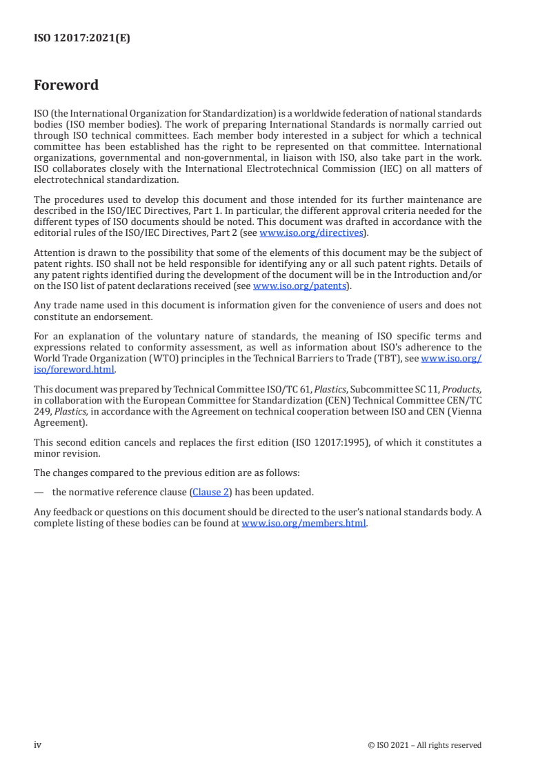 Keywords: ISO 12017:2021, PMMA double-skin sheets, poly(methyl methacrylate) test methods, double- and triple-skin sheets, luminous transmittance, thermal resistance, bending test, weathering test, quality control.