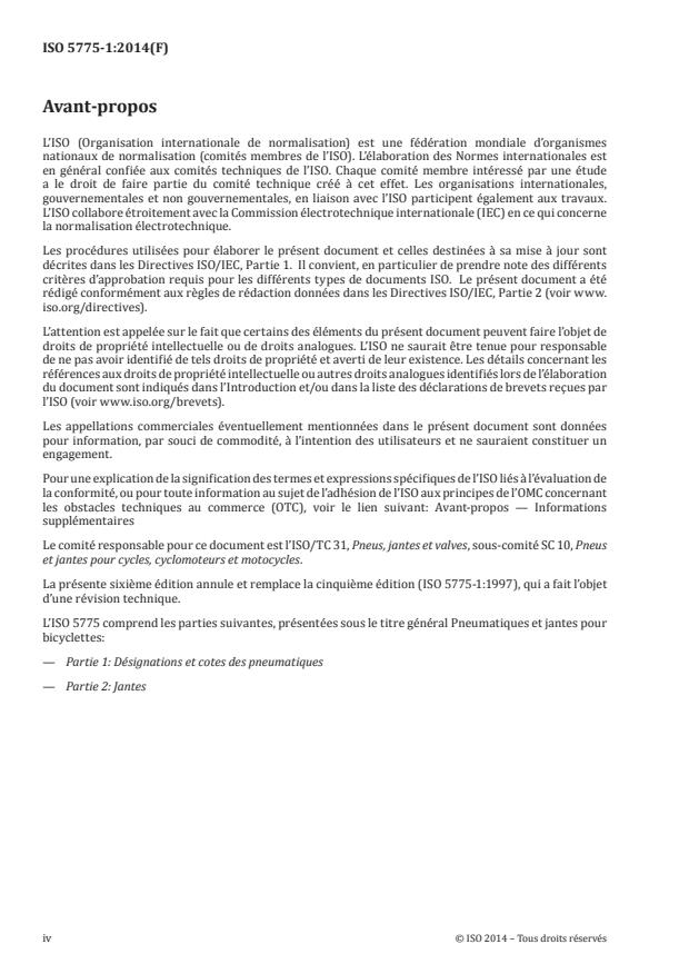 L'ISO 5775-1:2014 spécifie les désignations et les cotes des pneumatiques pour bicyclettes suivants: -les pneumatiques à tringle rigide, montés sur des jantes à rebord droit ou à crosse; -les pneumatiques à talon, montés sur des jantes à crochet. Les pneumatiques de type boyau et les bandages pleins ne sont pas couverts par la présente partie de l'ISO 5775-1:2014.