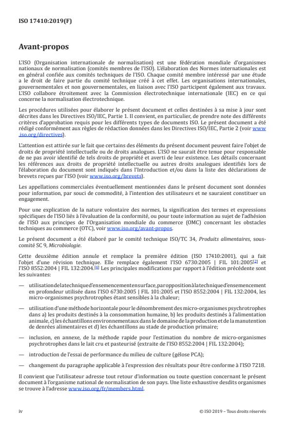 ISO 17410:2019 - Microbiologie de la chaîne alimentaire -- Méthode horizontale pour le dénombrement des micro-organismes psychrotrophes