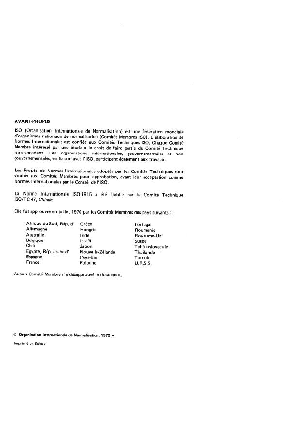 La Norme Internationale ISO 1915 a été établie par le Comité Technique