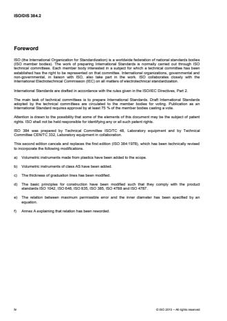 - Related product standards referenced in the ISO 384 development: ISO 1042, ISO 648, ISO 835, ISO 385, ISO 4788
