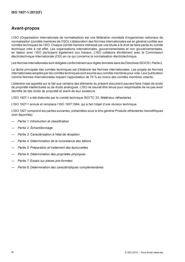L’ISO 1927 comprend les parties suivantes, présentées sous le titre général Produits réfractaires monolithiques