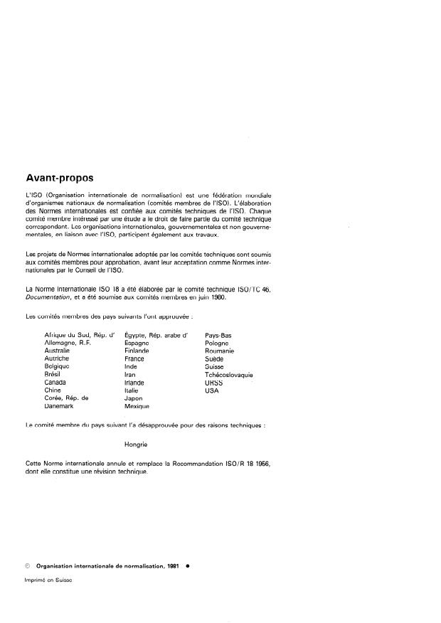 International Standard ISO 18 was developed by Technical Committee ISO/TC 46,