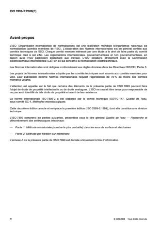 L'ISO 7899 comprend les parties suivantes, présentées sous le titre général Qualité de l'eau — Recherche et