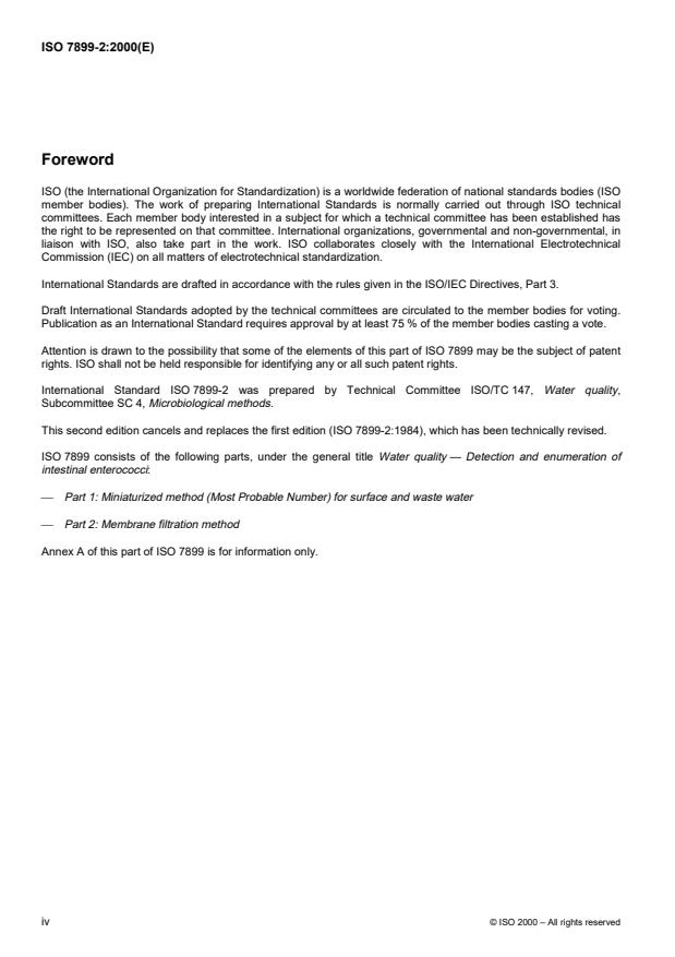La Norme internationale ISO 7899-2 a été élaborée par le comité technique ISO/TC 147, Qualité de l'eau,