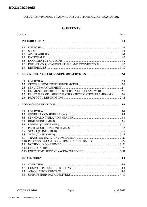 ISO 23103:2020 (derived from CCSDS 921.1) defines a specification framework for the Cross Support Transfer Service (CSTS) used in space communications. The standard describes, in an abstract and implementation‑independent way, the service procedures, service and procedure states, procedure behaviors, constituent operations, and the parameters associated with each operation. It explicitly does not define concrete application services, product implementations, data‑acquisition technologies, communications environments, or service scheduling/management techniques.