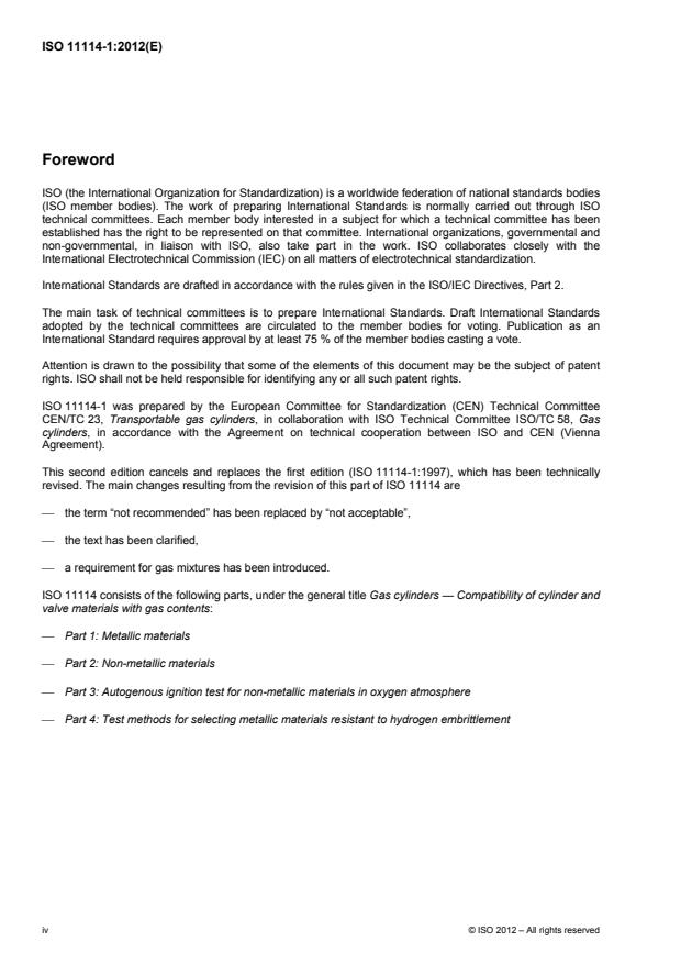 ISO 11114-1:2012 - Gas cylinders -- Compatibility of cylinder and valve materials with gas contents
